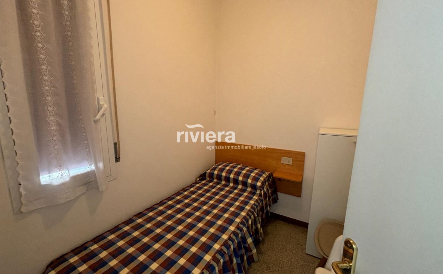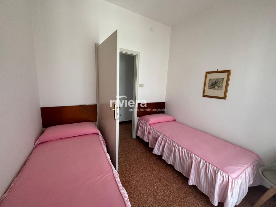 In condominio "La Zattera" fronte mare nella zona di Piazza Nember, appartamento sito al quarto piano, composto da ampio soggiorno con vista mare e cucina separata. Dalla zona giorno si accede a due terrazze ideali per pranzi e cene all'aperto. Camera matrimoniale, 2 camere con due letti singoli, bagno finestrato con box doccia e cameretta singola di servizio con bagno con box doccia e lavanderia. L'immobile dispone di aria condizionata nel reparto notte e giorno, lavatrice, lavastoviglie, posto auto riservato e posto spiaggia nella spiaggetta del condominio.