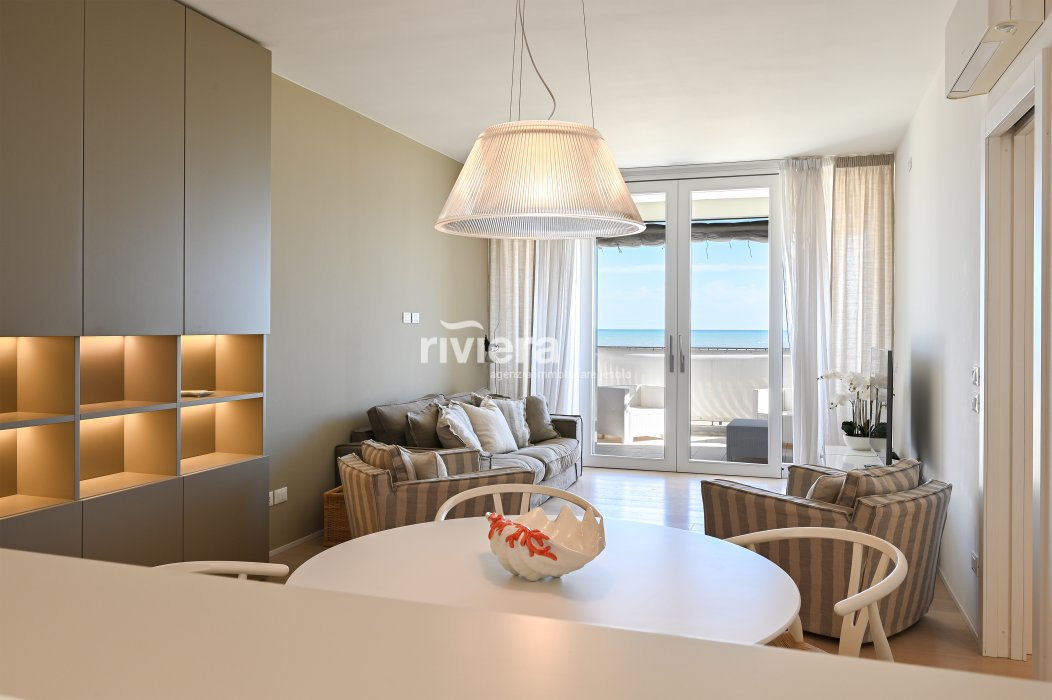 In condominio fronte mare, vendiamo uno splendido appartamento completamente ristrutturato e arredato a nuovo con arredo di alta qualità.L'appartamento sito al primo piano rialzato si affaccia direttamente sul mare, è composto da un ampia zona Living e una cucina a vista comletamente accessoriata, una camera matrimoniale con vista mare, una camera doppia e una singola, una bagno padronale con doppio rubinetto e box doccia secondo bagno di servizio con box doccia, angolo lavanderia e completare una bellissima terrazza vista mare .