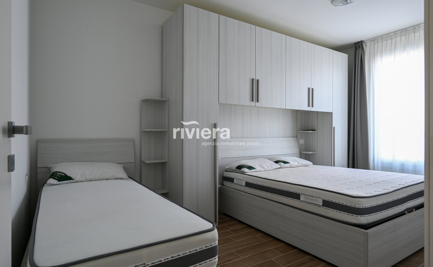 Il Residence “Wave Plus”, di recente costruzione e dotato di piscina, si trova a circa 500 metri dal mare, in zona Piazza Nember.L’appartamento, finemente arredato e situato al primo piano, offre una luminosa zona giorno di ampie dimensioni con cucina attrezzata e divano letto, dalla quale si accede a un grande terrazzo con vista sulla piscina, ideale per pranzi e cene all’aperto. La zona notte comprende una camera matrimoniale e una seconda camera matrimoniale con terzo letto alla francese, servita da bagno finestrato con box doccia. A completare la proprietà: aria condizionata, lavatrice, lavastoviglie e posto auto coperto riservato.